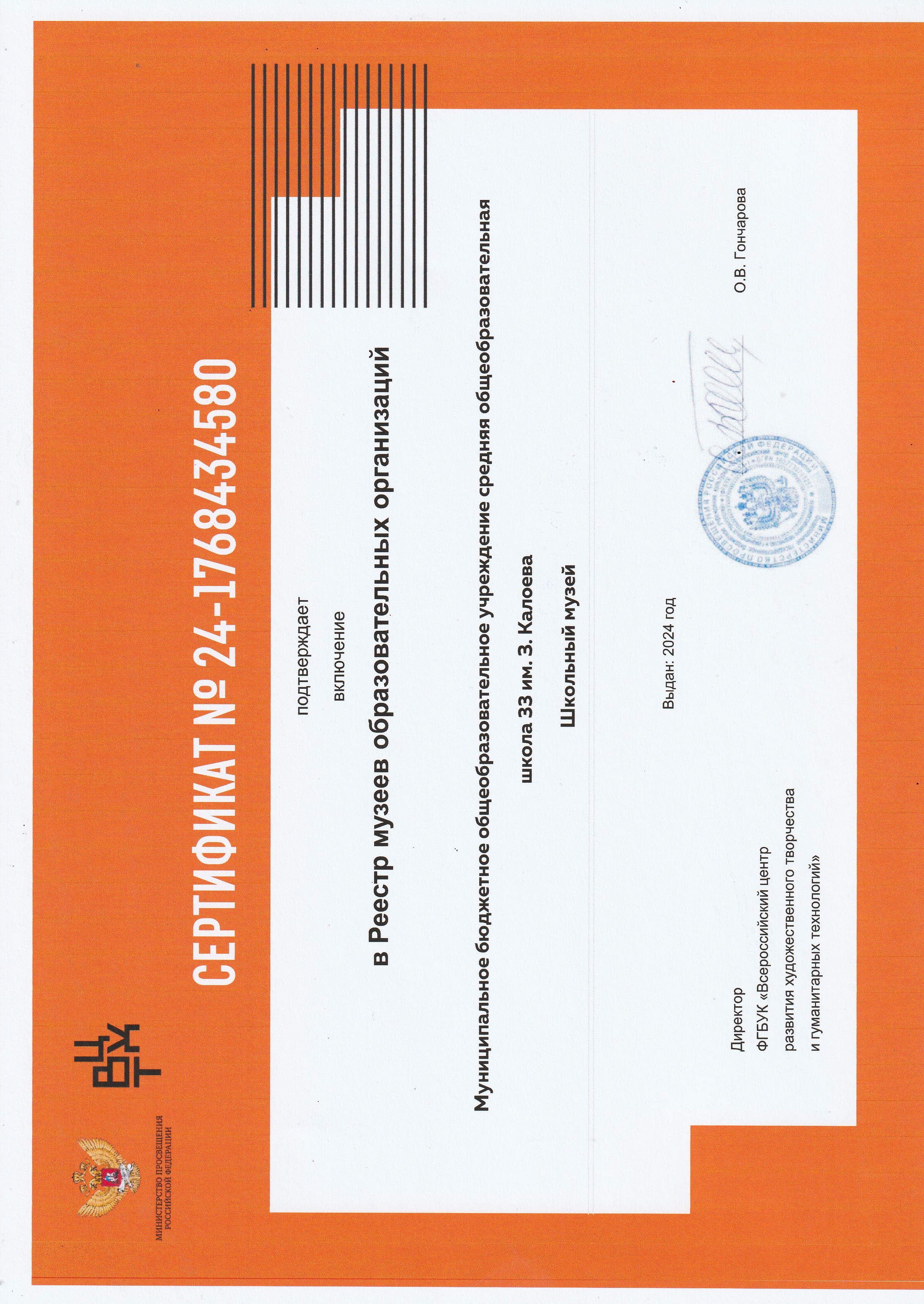 Положение о школьном музее МБОУ СОШ №33 им. З. Калоева